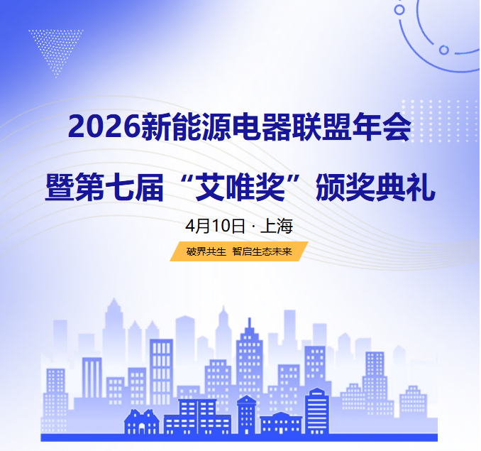 当前,全球能源转型加速推进,新型电力系统建设方兴未艾,低压电器与新能源产业正迎来前所未有的发展机遇。为凝聚行业智慧,共谋产业未来,由上海电器科学研究院、新能源电器联盟、低压电器行业与可再生能源发电系统领域评选活动组委会共同主办,以 “破界共生 智启生态未来” 为主题的2026年新能源电器联盟年会暨第七届“艾唯奖”颁奖典礼,将于4月10日在上海金茂君悦大酒店隆重举行。